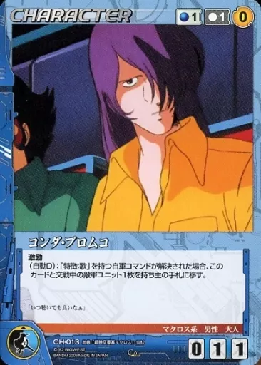 Japanese title: クルセイド/C/CHARACTER/マクロスクルセイド 第1弾~銀河を駆ける歌声~ CH-013[C]:コンダ・ブロムコ