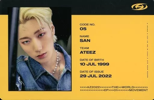 Collection Card (Male) / CD "THE WORLD EP. 1 : MOVEMENT (DIARY Ver.) Enclosed Special ID Card ATEEZ / San / CD "THE WORLD EP. 1 : MOVEMENT" (DIARY Ver.) enclosed privilege ID card
