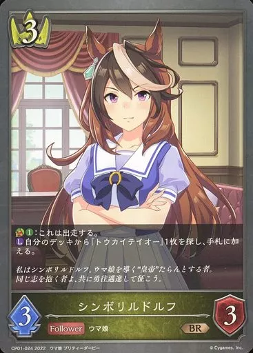 Japanese title: シャドウバース エボルヴ/BR/フォロワー/コラボパック「ウマ娘 プリティーダービー」 CP01-024[BR]:シンボリルドルフ