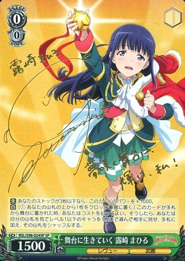 Japanese title: ヴァイスシュヴァルツ/SP/キャラ/ブースターパック 「劇場版 少女☆歌劇 レヴュースタァライト」 RSL/S98-024SP[SP]:(ホロ)舞台に生きていく 露崎 まひる(岩田陽葵金箔押しサイン入り)
