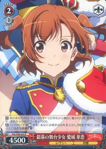 Japanese title: ヴァイスシュヴァルツ/R/キャラ/ブースターパック 「劇場版 少女☆歌劇 レヴュースタァライト」 RSL/S98-053[R]:銀幕の舞台少女 愛城 華恋