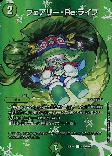 Japanese title: デュエルマスターズ/C/自然/[DM22-EX1]黄金戦略!!デュエキングMAX 2022 超49/超50[C]:フェアリー・Re:ライフ