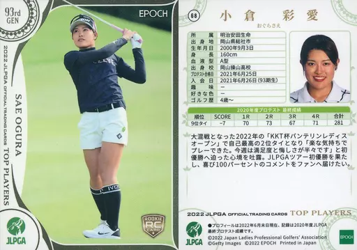 Japanese title: スポーツ/レギュラーカード/2022 JLPGA OFFICIAL TRADING CARDS TOP PLAYERS 68[レギュラーカード]:小倉彩愛