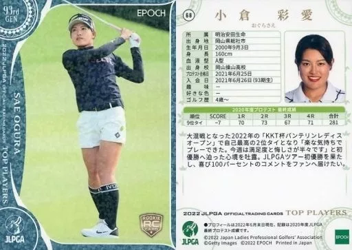 Japanese title: スポーツ/レギュラーカード/2022 JLPGA OFFICIAL TRADING CARDS TOP PLAYERS 68[レギュラーカード]:小倉彩愛(青箔版)