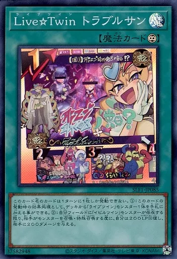 Japanese title: 遊戯王/SR/魔法/Selection 5 SLF1-JP085[SR]:Live☆Twin トラブルサン