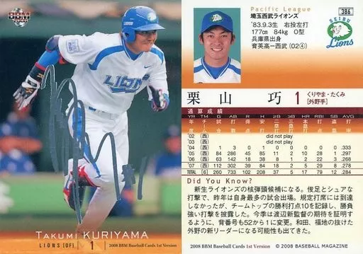 Japanese title: BBM/レギュラーカード/BBM2008 ベースボールカード 1stバージョン 386[レギュラーカード]:栗山巧(銀箔押しサイン入り)