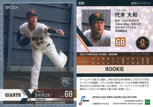 Japanese title: スポーツ/レギュラーカード/ROOKIE/2022 NPB プロ野球カード LUXURY COLLECTION 026[レギュラーカード]:代木大和