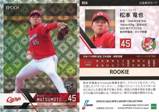 Japanese title: スポーツ/レギュラーカード/ROOKIE/2022 NPB プロ野球カード LUXURY COLLECTION 034[レギュラーカード]:松本竜也(菱形ホログラム版)