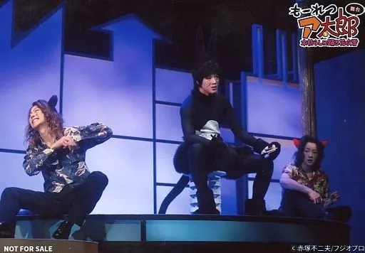 Japanese title: 生写真(男性)/俳優 山沖勇輝(タンゴロー)・久下恭平(ネコ丸)・吉田翔吾(ネコ吉)/ライブフォト・横型・キャラクターショット/舞台「もーれつア太郎 木枯らしに踊る花吹雪」特典生写真