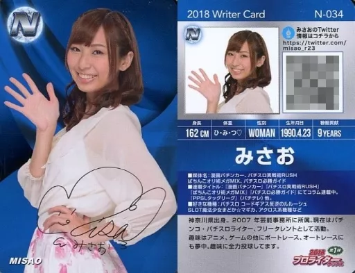 Japanese title: コレクションカード(女性)/ N-034[ノーマル]:みさお/印刷サイン入り/プロライターチップス 第1弾