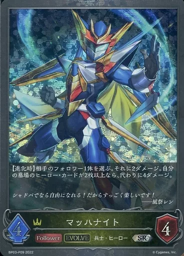 Japanese title: シャドウバース エボルヴ/SR/フォロワー・エボルヴ/ブースターパック第3弾「フレイム・オブ・レーヴァテイン」 BP03-P09[SR]:(プレミアム)マッハナイト