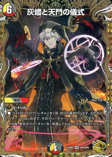 Japanese title: デュエルマスターズ/VR/多色/[DM22-RP2]ゴッド・オブ・アビス 第2弾「轟炎の竜皇」 SP5/SP5[VR]:灰燼と天門の儀式