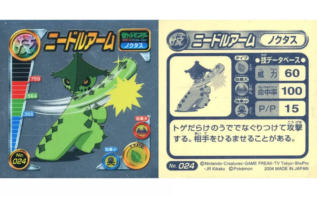 Japanese title: コレクションシール/メタリック/ポケットモンスターアドバンスジェネレーション 最強シール烈伝DX技 No.024[メタリック]:ニードルアーム