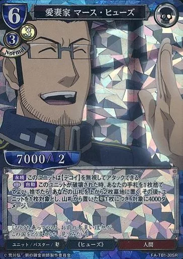 Japanese title: ビルディバイド/SR/青/タイアップブースター「鋼の錬金術師 FULLMETAL ALCHEMIST」 FA-TB1-30SR[SR]:愛妻家 マース・ヒューズ