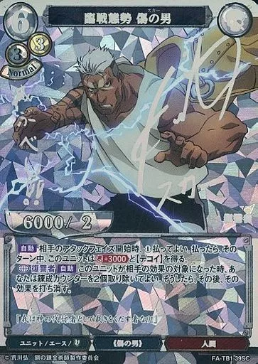 Japanese title: ビルディバイド/SC/白/タイアップブースター「鋼の錬金術師 FULLMETAL ALCHEMIST」 FA-TB1-39SC[SC]:臨戦態勢 傷の男(三宅健太ホロ箔押しサイン入り)