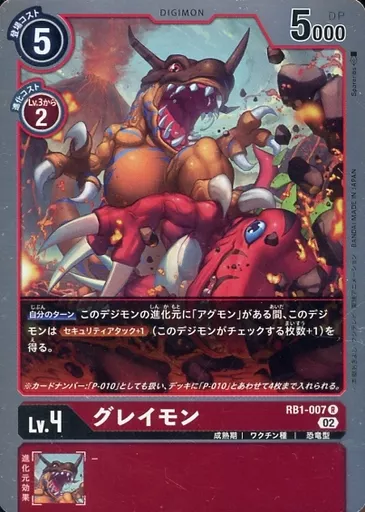 Japanese title: デジモンカードゲーム/R/DIGIMON/リブートブースター ライジングウインド【RB-01】 RB1-007[R]:グレイモン