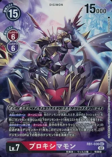 Japanese title: デジモンカードゲーム/SEC/DIGIMON/リブートブースター ライジングウインド【RB-01】 RB1-036[SEC]:(パラレル)プロキシマモン