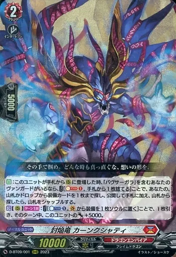 Japanese title: ヴァンガード/RRR/ドラゴンエンパイア/overDress ブースターパック第9弾 「龍樹侵攻」 D-BT09/001[RRR]:封焔竜 カーンクシャティ