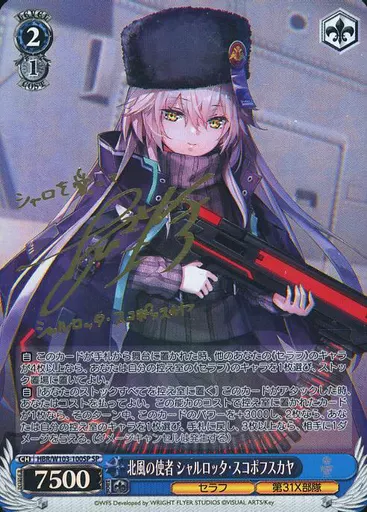 Japanese title: ヴァイスシュヴァルツ/SP/キャラ/ブースターパック ヘブンバーンズレッド HBR/W103-100SP[SP]:(ホロ)北風の使者 シャルロッタ・スコポフスカヤ(会沢紗弥金箔押しサイン入り)