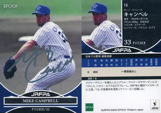 Japanese title: スポーツ/インサートカード/REGULAR PARALLEL FOIL SIGNATURE/2022 日本プロ野球外国人OB選手会 オフィシャルベースボールカードセット 13[インサートカード]:マイク・キャンベル/Mike Campbell(銀箔押しプリントサイン入り)
