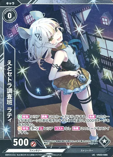 Japanese title: Vividz(ビビッヅ)/UC/キャラ/ブースターパック第3弾「ファンタジー:プロローグ」 VB03-066[UC]:えとセトラ調査班 ラティ(ホログラムレア)