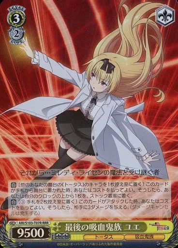Japanese title: ヴァイスシュヴァルツ/RRR/キャラ/トライアルデッキ ありふれた職業で世界最強 ARI/S103-T07R[RRR]:(ホロ)最後の吸血鬼族 ユエ
