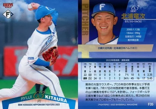 BBM / Regular Card / BBM Hokkaido Nippon-Ham Fighters Baseball Card 2023 F35 [Regular Card] : Ryuji Kitaura