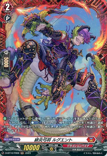 Japanese title: ヴァンガード/FR/ドラゴンエンパイア/overDress ブースターパック第10弾 「仮面竜奏」 D-BT10/FR06[FR]:緋炎弓将 ルグエント