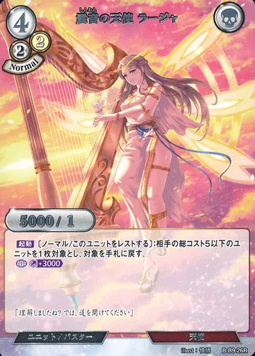 Japanese title: ビルディバイド/R/白/ブースターパックVol.9 身を焦がす野望 B-B9-26R[R]:震音の天使 ラージャ