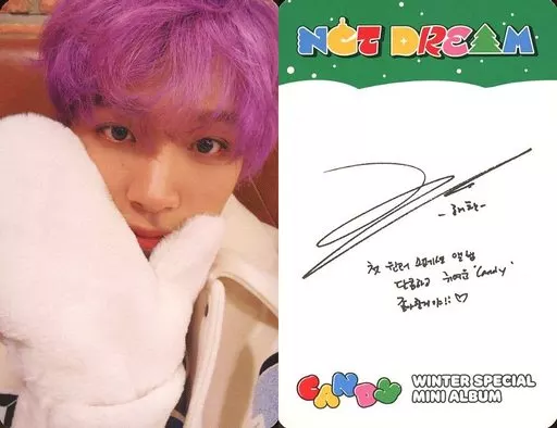 Collection Card (Male) / Special Photo Card with "Candy" (Photobook Ver.) NCT DREAM / Hechan (Haechan) / Back With Print Signature and Message / CDs "Candy" (Photobook Ver.) enclosed special photo card