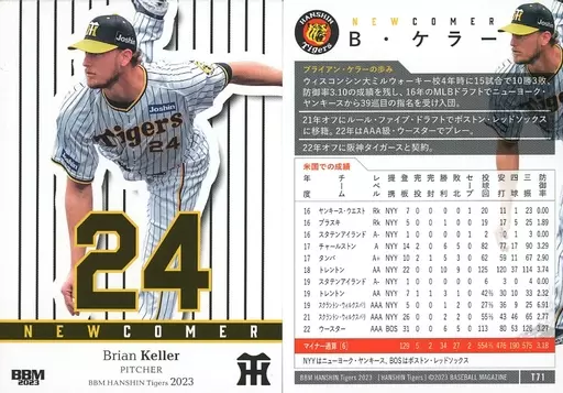 Japanese title: BBM/レギュラーカード/Newcomer/BBM 阪神タイガース ベースボールカード2023 T71[レギュラーカード]:B・ケラー