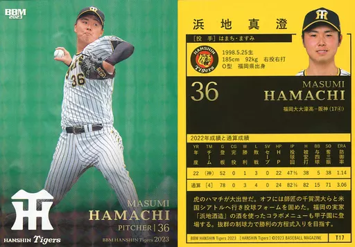 Japanese title: BBM/レギュラーカード/BBM 阪神タイガース ベースボールカード2023 T17[レギュラーカード]:浜地真澄(キラカード版)