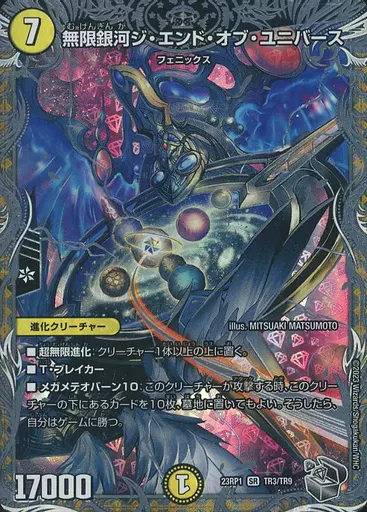 Japanese title: デュエルマスターズ/SR/光/[DM23-RP1]アビス・レボリューション 第1弾「双竜戦記」 TR3/TR9[SR]:無限銀河ジ・エンド・オブ・ユニバース