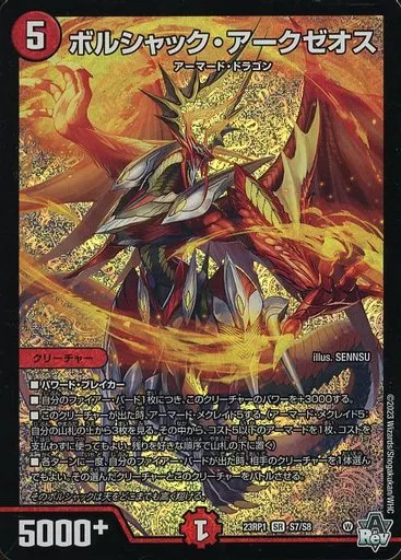 Japanese title: デュエルマスターズ/SR/火/[DM23-RP1]アビス・レボリューション 第1弾「双竜戦記」 S7/S8[SR]:ボルシャック・アークゼオス