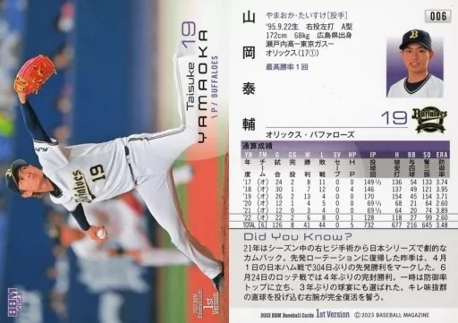 Japanese title: BBM/レギュラーカード/2023 BBM ベースボールカード 1stバージョン 006[レギュラーカード]:山岡泰輔