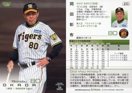Japanese title: BBM/レギュラーカード/2023 BBM ベースボールカード 1stバージョン 217[レギュラーカード]:岡田彰布