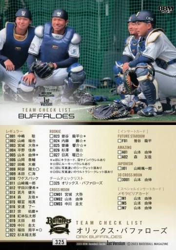 Japanese title: BBM/レギュラーカード/チームチェックリスト/2023 BBM ベースボールカード 1stバージョン 325[レギュラーカード]:オリックス・バファローズ