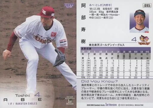 BBM / Regular Card / 2023 BBM Baseball Card 1st Version 095 [Regular Card] : Toshiki Abe (Kira Card version)