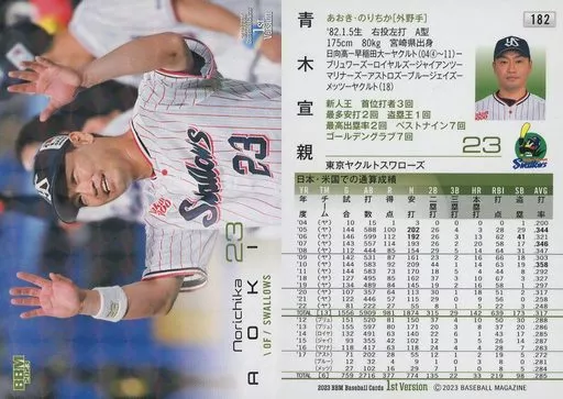 Japanese title: BBM/レギュラーカード/2023 BBM ベースボールカード 1stバージョン 182[レギュラーカード]:青木宣親(キラカード版)