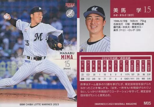 Japanese title: BBM/レギュラーカード/BBM 千葉ロッテマリーンズ ベースボールカード2023 M05[レギュラーカード]:美馬学(キラカード版)