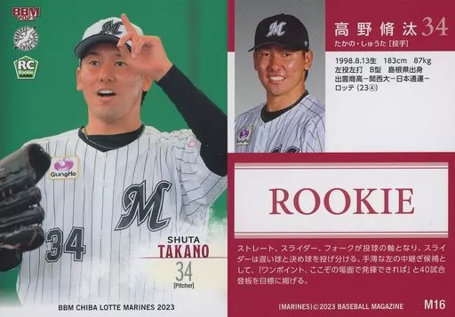 Japanese title: BBM/レギュラーカード/BBM 千葉ロッテマリーンズ ベースボールカード2023 M16[レギュラーカード]:高野脩汰