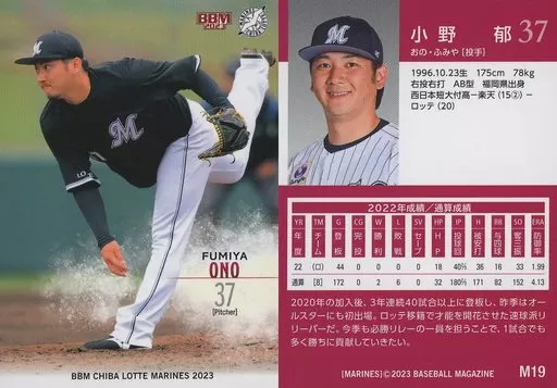 Japanese title: BBM/レギュラーカード/BBM 千葉ロッテマリーンズ ベースボールカード2023 M19[レギュラーカード]:小野郁