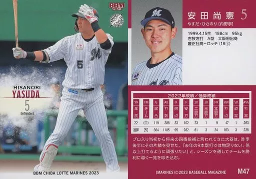 Japanese title: BBM/レギュラーカード/BBM 千葉ロッテマリーンズ ベースボールカード2023 M47[レギュラーカード]:安田尚憲