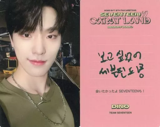 Japanese title: コレクションカード(男性)/「2022 SVT 6TH FAN MEETING SEVENTEEN in CARAT LAND MEMORY BOOK+」封入特典フォトカード SEVENTEEN/DINO(ディノ)/裏面ピンク・印刷メッセージ入り/「2022 SVT 6TH FAN MEETING SEVENTEEN in CARAT LAND MEMORY BOOK+」封入特典フォトカード