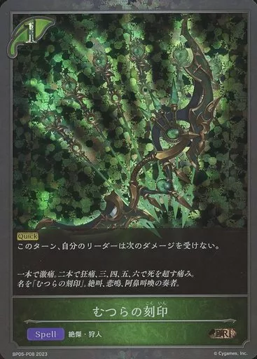 Japanese title: シャドウバース エボルヴ/BR/スペル/ブースターパック第5弾「永劫なる絶傑」 BP05-P08[BR]:(プレミアム)むつらの刻印