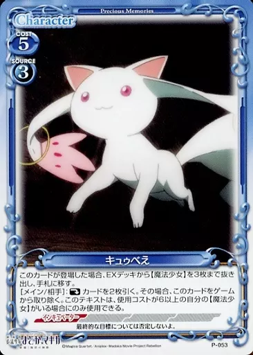 Japanese title: プレシャスメモリーズ/PR/キャラクター/きゃらスリーブコレクションデラックス「劇場版 魔法少女まどか☆マギカ[新編]叛逆の物語」鹿目まどか P-053[PR]:キュゥべえ