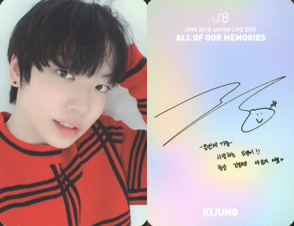 Japanese title: コレクションカード(男性)/DVD「UNB 2018 JAPAN LIVE DVD ALL OF OUR MEMORIES」封入特典フォトカード UNB/キジュン(from.IM)/文字白・印刷サイン、メッセージ入り/DVD「UNB 2018 JAPAN LIVE DVD ALL OF OUR MEMORIES」封入特典フォトカード