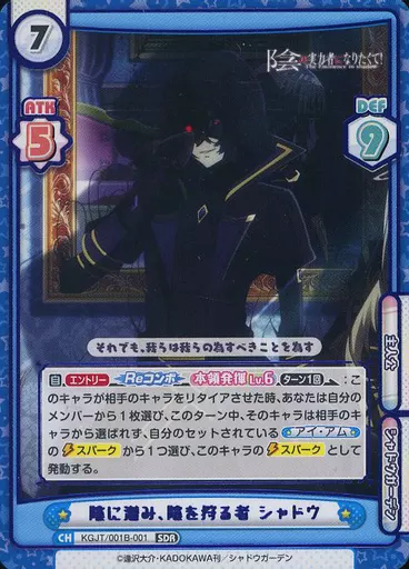 Japanese title: Reバース for you/SDR/CH/ブースターパック「陰の実力者になりたくて!」 KGJT/001B-001[SDR]:陰に潜み、陰を狩る者 シャドウ