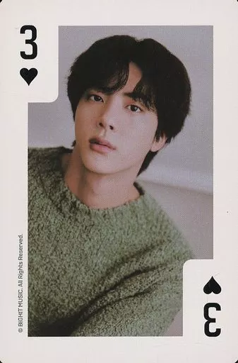 Japanese title: コレクションカード(男性)/「BTS GLOBAL OFFICIAL FANCLUB ARMY MEMBERSHIP KIT」封入プレイングカード(トランプカード) BTS(防弾少年団)/JIN(ジン)/ハートの3/「BTS GLOBAL OFFICIAL FANCLUB ARMY MEMBERSHIP KIT」封入プレイングカード(トランプカード)