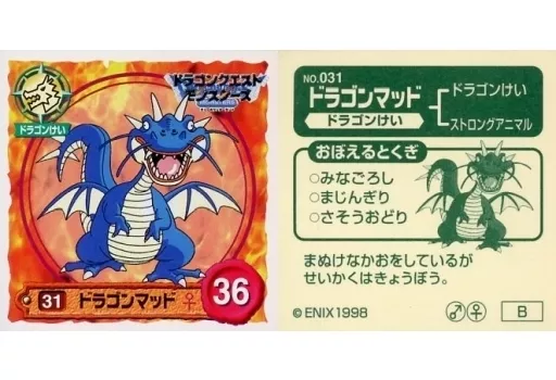 Japanese title: コレクションシール/ノーマル/ドラゴンけい/ドラクエシールコレクション ドラゴンクエストモンスターズ テリーのワンダーランド 第2弾 NO.031[ノーマル]:ドラゴンマッド ♀